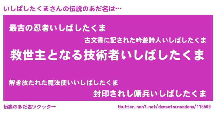 | 胡散臭い通販商品みたいなあだ名 | 『あなたにだけ特別に提供する100年もののヴィンテージワイン…その名も「いしばしたくま」』 |