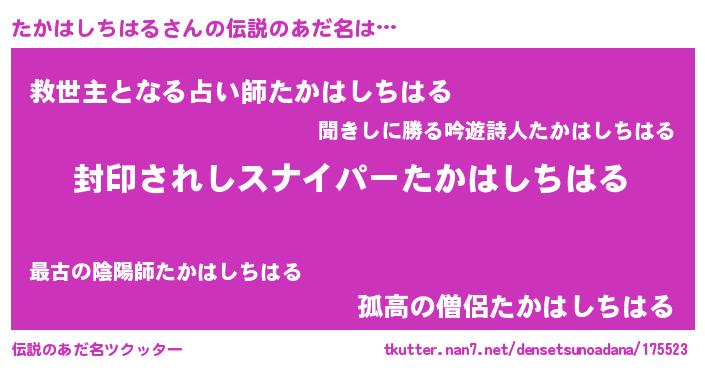 | ヒーロー風カッコイイあだ名 | 『スーパータカハシチハル』 |