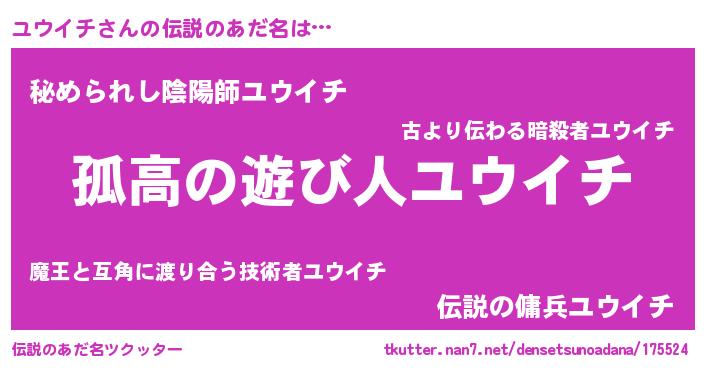 | 意味不明あだ名 | 『とにかく怪しいユウイチ』 |