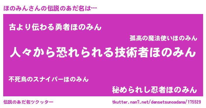 | 意味不明あだ名 | 『自称ほのみん』『永久保存ほのみん』 |