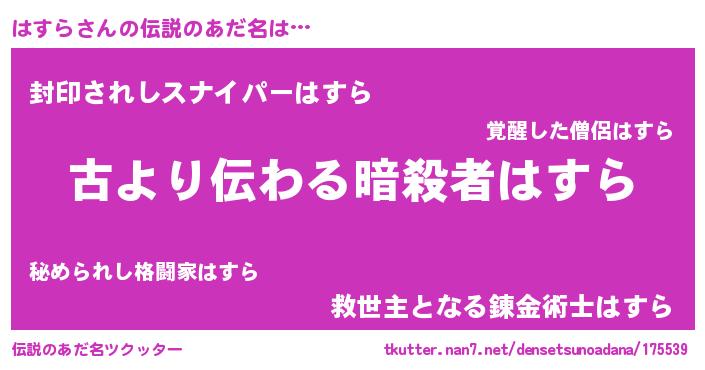 | 胡散臭い通販商品みたいなあだ名 | 『来世でも幸せになれる健康食品…その名も「はすら」』 |