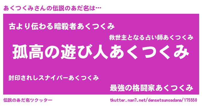 | 意味不明あだ名 | 『とにかく怪しいあくつくみ』 |