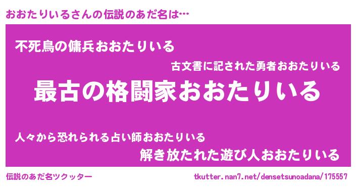 | 意味不明あだ名 | 『住所不定無職おおたりいる(13歳)』 |