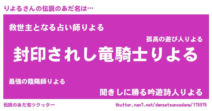| 意味不明あだ名 | 『ペロリンりよる』『なめこ科りよる属』 |