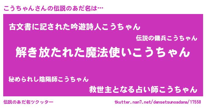 | 意味不明あだ名 | 『自称こうちゃん』『永久保存こうちゃん』 |
