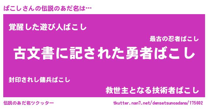 | ヒーロー風カッコイイあだ名 | 『ネオバコシ』『黄金騎士バコ』 |