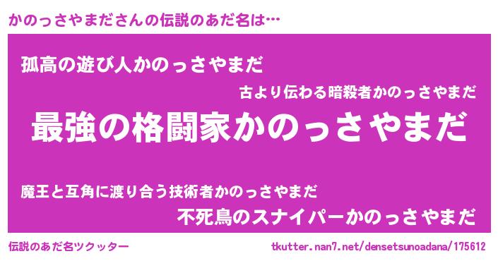| 男性向けラノベタイトル風あだ名 | 『かのっさやまだに滅ぼされるだけの簡単なお仕事です』 |