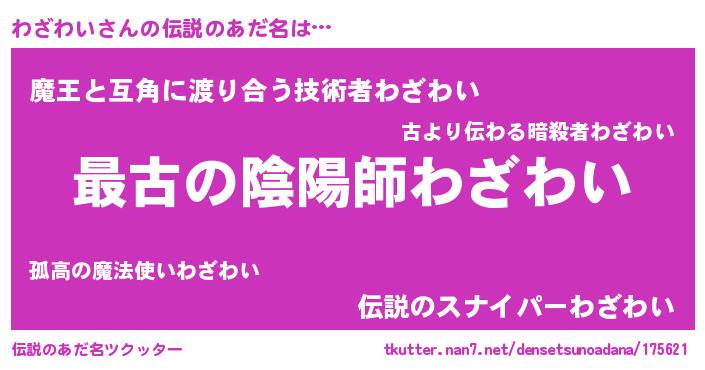 | 意味不明あだ名 | 『住所不定無職わざわい(79歳)』 |