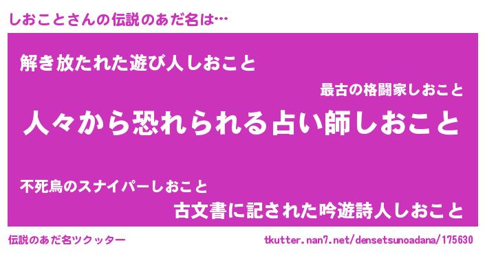 | 女子向けラノベタイトル風あだ名 | 『しおことが死なない童話 林檎のしおことの診療簿』 |