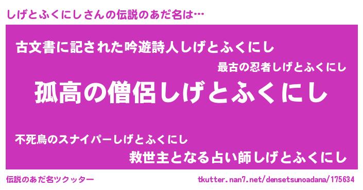 | ヘコむあだ名 | 『しげっぺ』『しげとふくにし(小並感)』 |