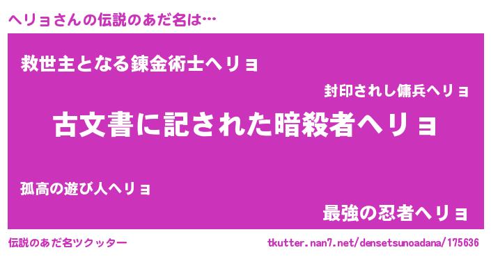 | 胡散臭い通販商品みたいなあだ名 | 『前代未聞の健康食品…その名も「ヘリョ」』 |
