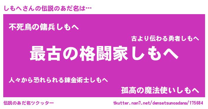 | 意味不明あだ名 | 『住所不定無職しもへ(11歳)』 |