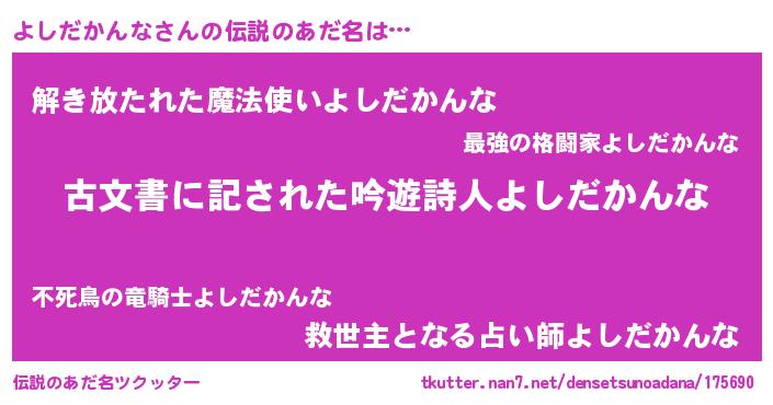 | 男性向けラノベタイトル風あだ名 | 『Re:よしだかんなから始める異世界生活』 |