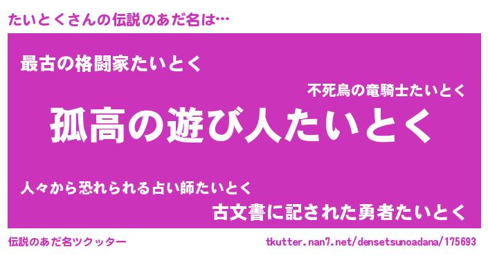 | ヒーロー風カッコイイあだ名 | 『暗黒騎士タイ』『ウルトラたいとくマン』 |
