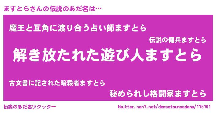 | ヒーロー風カッコイイあだ名 | 『幻影騎士マス』『友情の使者ますとら』 |