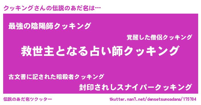 | 男性向けラノベタイトル風あだ名 | 『ノーゲーム・ノークッキング』 |