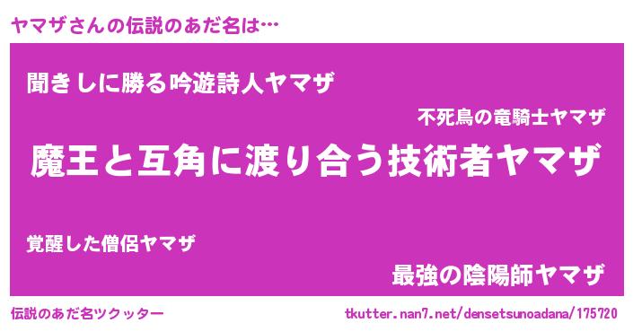 | ヒーロー風カッコイイあだ名 | 『愛の使者ヤマザ』『ネオヤマザ』 |