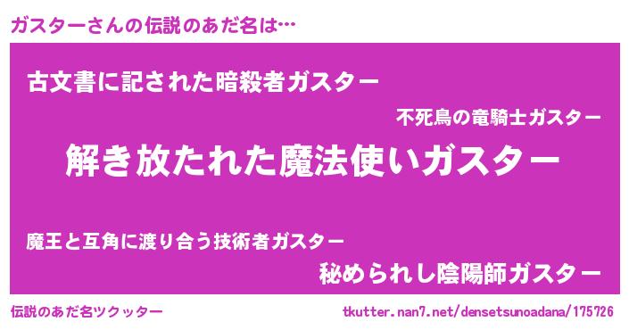 | 男性向けラノベタイトル風あだ名 | 『冴えないガスターの育てかた』 |