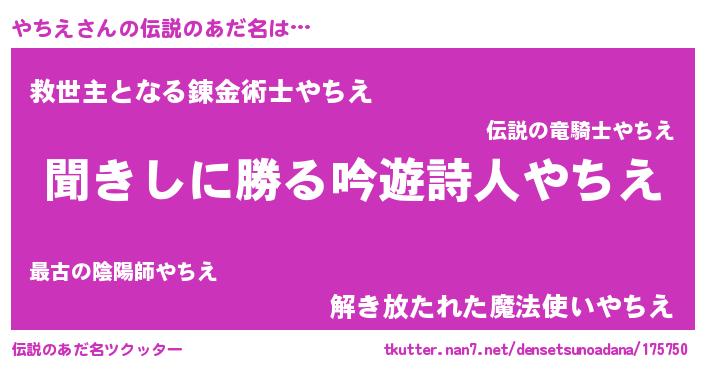 | 男性向けラノベタイトル風あだ名 | 『やちえという概念が存在しない退屈な世界 』 |