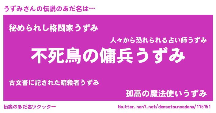 ヘコむあだ名 | 『うずにゅー』『牛乳』『うずお』 |