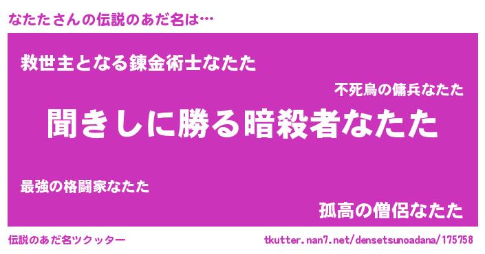 | 男性向けラノベタイトル風あだ名 | 『なたたという概念が存在しない退屈な世界 』 |