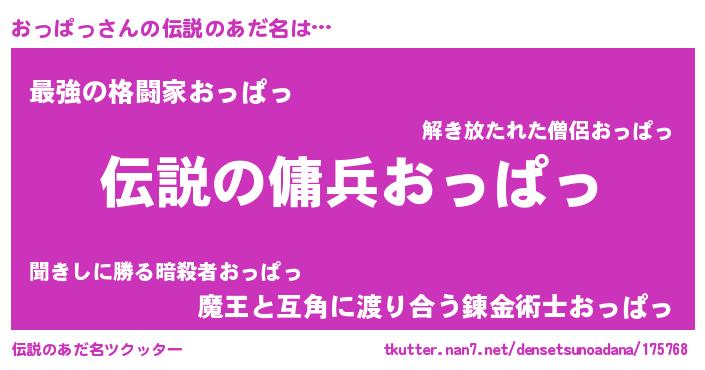 | 男性向けラノベタイトル風あだ名 | 『オッパッスレイヤー』 |