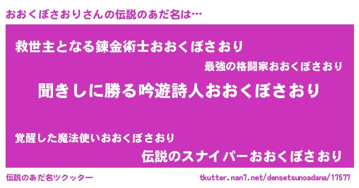 | 意味不明あだ名 | 『永久保存おおくぼさおり』 |
