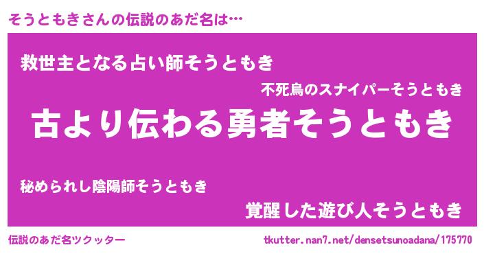 | ヘコむあだ名 | 『そうともき(震え声)』『そう太郎』 |