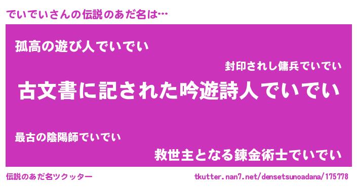 | 意味不明あだ名 | 『永久保存でいでい』『自称でいでい』 |