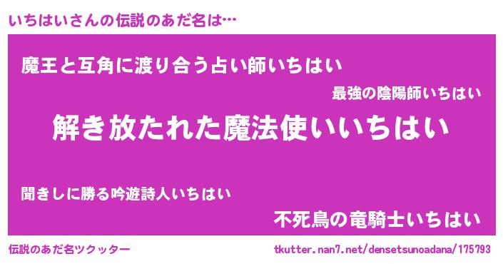 | ヒーロー風カッコイイあだ名 | 『仮面イチダー』『魔戒騎士イチ』 |