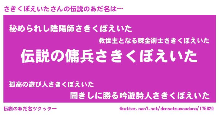 | 意味不明あだ名 | 『自称さきくぼえいた』 |