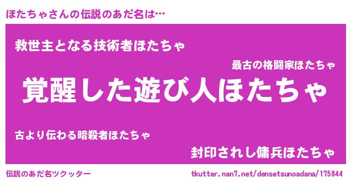 | 男性向けラノベタイトル風あだ名 | 『ほたちゃの嫁は女の子じゃないと思った?』 |
