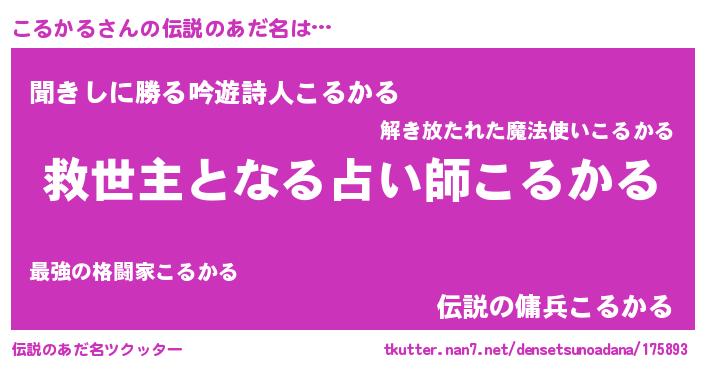 | ヘコむあだ名 | 『こるかる(爆)』『こるもー』『牛乳』 |