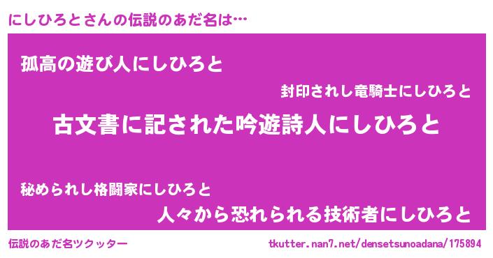 | 意味不明あだ名 | 『永久保存にしひろと』『自称にしひろと』 |