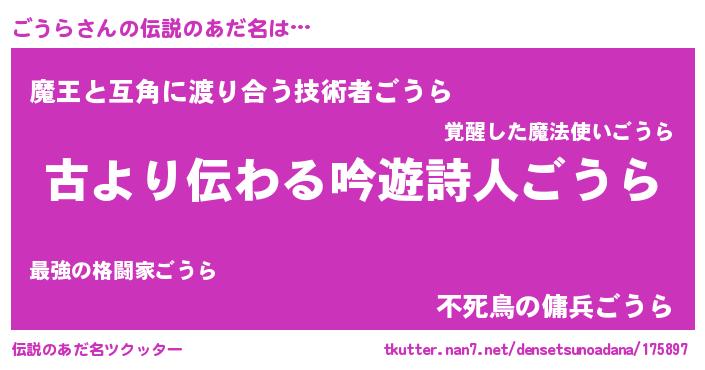 | ヘコむあだ名 | 『ごうら(笑)』『ごうにゅー』 |