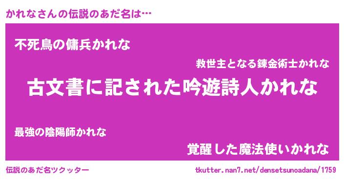| ヘコむあだ名 | 『かれな(小並感)』『かれにゅー』 |