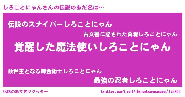| 欧米人風あだ名 | 『ウサインしろことにゃん』 |