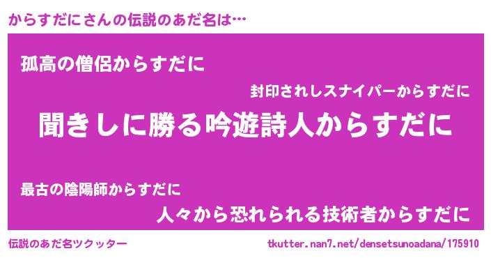 | 男性向けラノベタイトル風あだ名 | 『カラスダニスレイヤー』 |