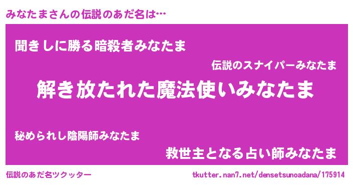 | 意味不明あだ名 | 『とにかく怪しいみなたま』 |