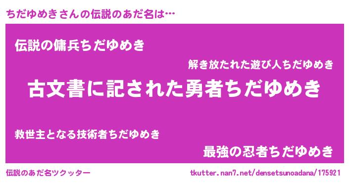 | 意味不明あだ名 | 『自称ちだゆめき』『永久保存ちだゆめき』 |