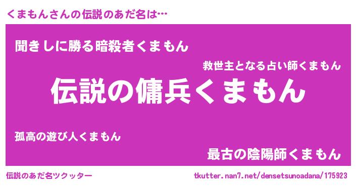 | 胡散臭い通販商品みたいなあだ名 | 『必ず成功する水晶球…その名も「くまもん」』 |