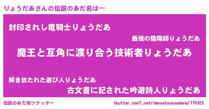 | ヒーロー風カッコイイあだ名 | 『愛の使者りょうだあ』『ネオリョウダア』 |