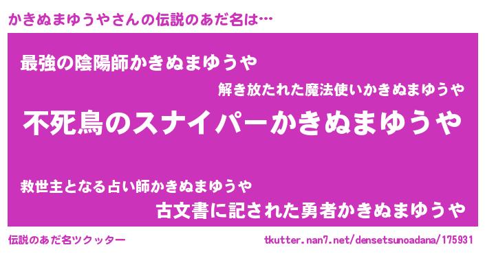 | 胡散臭い通販商品みたいなあだ名 | 『モテモテ間違いなし霊験あらたかなお札…その名も「かきぬまゆうや」』 |