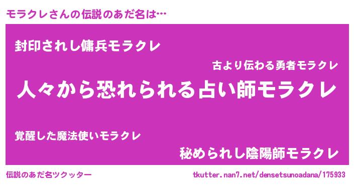 | ヒーロー風カッコイイあだ名 | 『ウルトラ戦士モラクレ』『仮面モラダー』 |