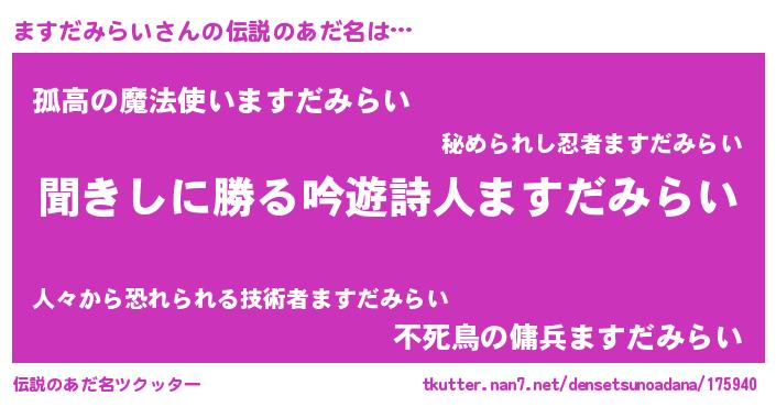 | ヘコむあだ名 | 『ますだみらい(小並感)』『ますお』 |