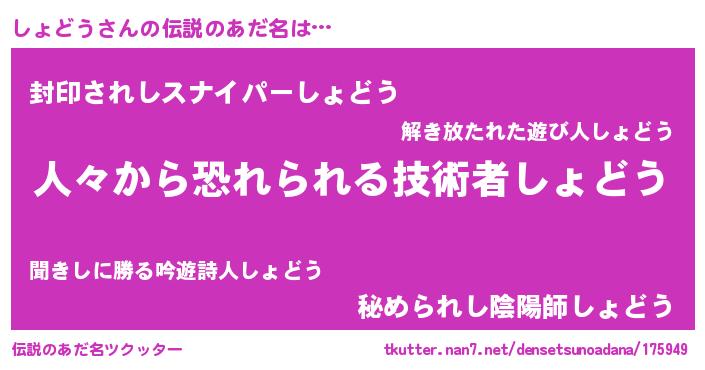 | ヒーロー風カッコイイあだ名 | 『超時空戦士ショドウ』『仮面ショダー』 |