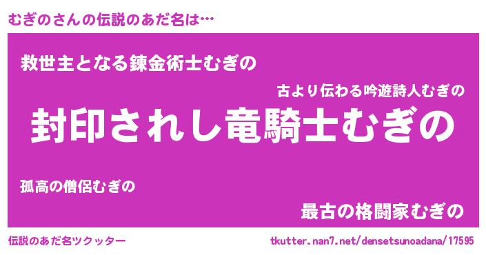 | 胡散臭い通販商品みたいなあだ名 | 『億万長者になれるブレスレット…その名も「むぎの」』 |