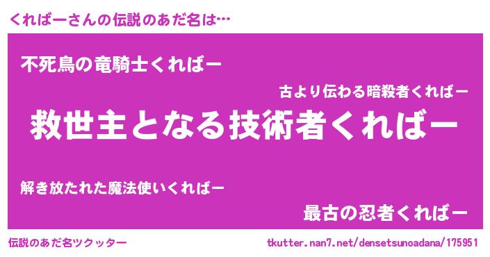 | ヒーロー風カッコイイあだ名 | 『慈愛の使者くればー』『ネオクレバー』 |