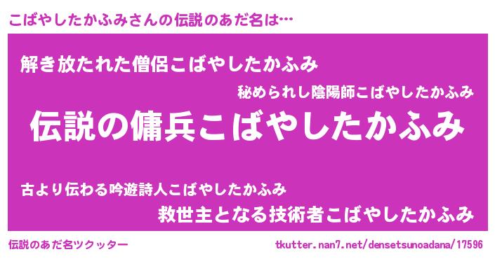 | 女子向けラノベタイトル風あだ名 | 『シンデレラこばやしたかふみ家の靴箱館』 |