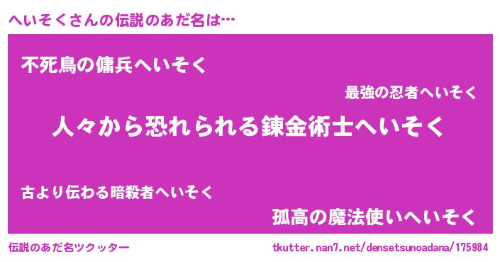 | 欧米人風あだ名 | 『ダニエルへいそく』『マイケルへいそく』 |
